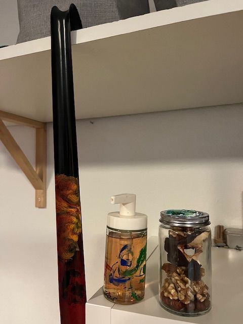 von drei Kinder zusammen gemalt - links Drache Dino - rechts ein Gespenst
